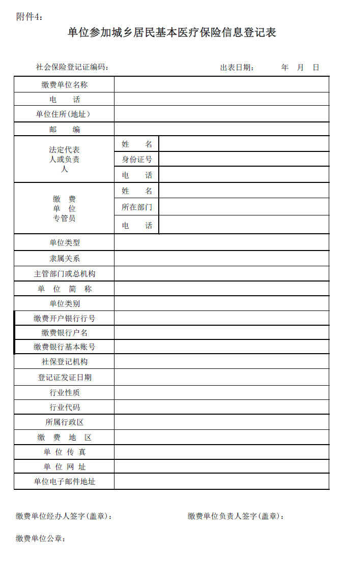 单位参加城乡居民基本医疗保险信息登记表